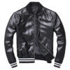 Black Baseball Varsity Bomber Leather Jacket