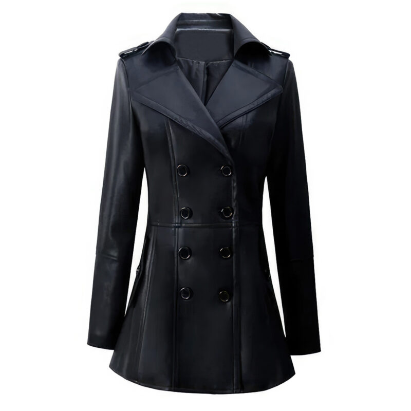 The Women’s Black Genuine Sheepskin Double Breasted Fashion Classic British Style Mid-Length Slim Fit Leather Trench Coat exudes classic elegance. This coat is expertly constructed from high-quality sheepskin leather, providing a soft, sumptuous feel and long-lasting wear. The double-breasted button fastening and lapel collar provide a touch of British elegance, while the mid-length shape flatters all body types. This trench coat effortlessly mixes elegance and functionality, making it a wardrobe must-have. This coat is ideal for both informal and formal situations, ensuring that you always go out in elegance.