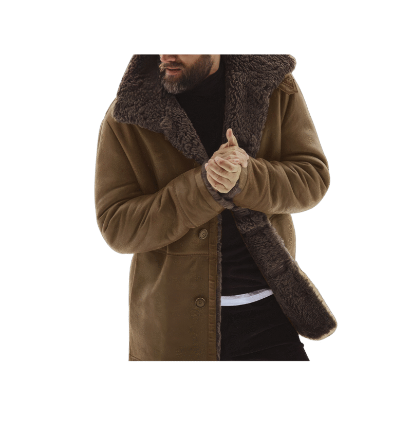 Stay warm and stylish this winter with the Men’s Warm Single Breasted Fashion G1 Military Leather Her Coat made of Brown Genuine Suede Sherpa Mouton with Faux Fur Lining. This coat is made from premium genuine suede and features a cozy sherpa shearling faux fur lining that ensures both durability and comfort. A single-breasted button closure adds a fashionable touch and is easy to wear for a variety of outdoor activities. With military inspired design, this leather coat is perfect for mountaineering, casual, sports, outdoors, hiking, hunting, skiing, snow, trekking, climbing, fishing and more. Add this versatile and sophisticated coat to your cold weather wardrobe today.