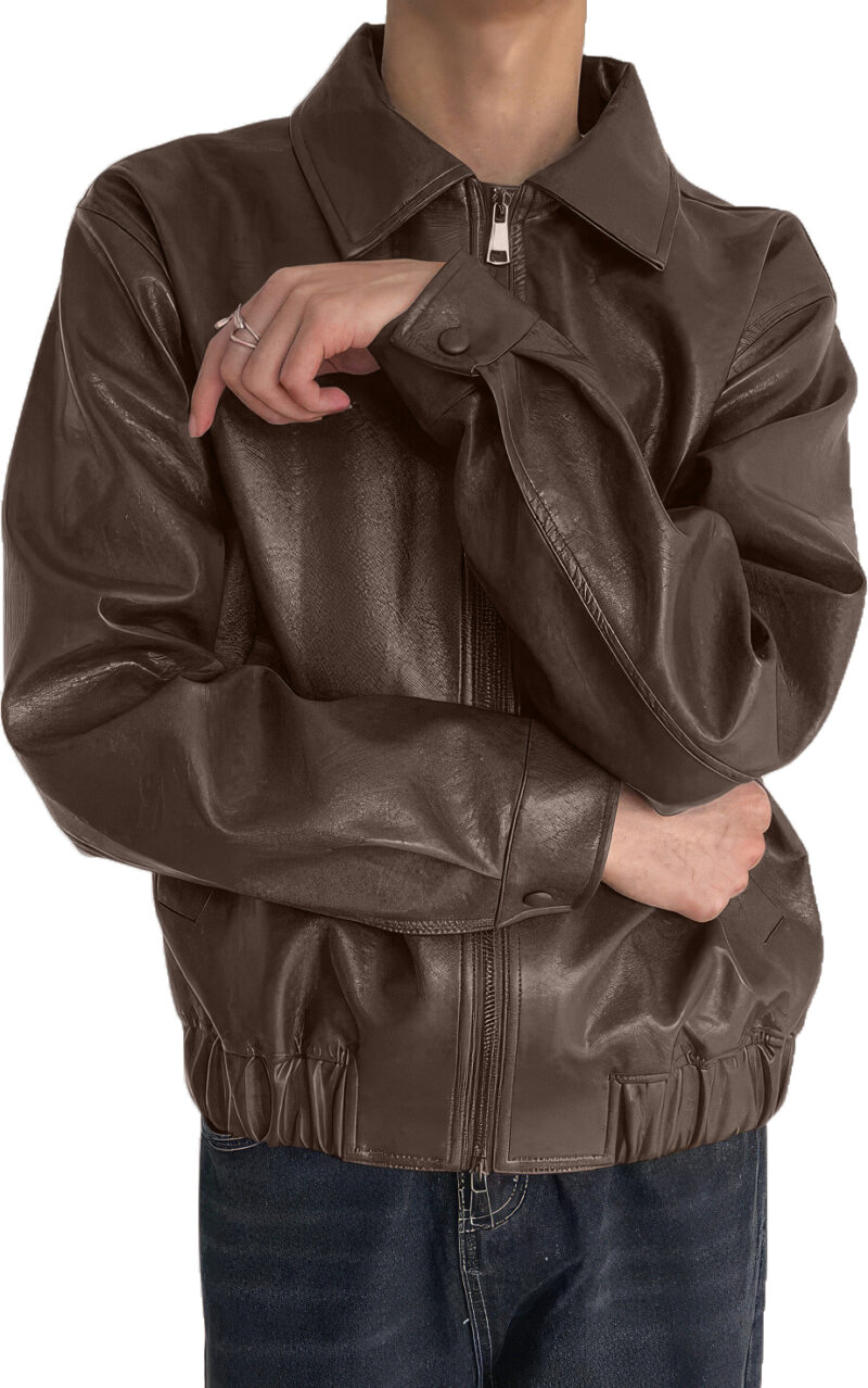 Upgrade your wardrobe with our Men’s Brown Genuine Sheepskin Shirt Collar Classic Fashion Oversized Leather Jacket. Made from genuine sheepskin leather, this jacket is the epitome of quality and style. The shirt collar design adds a classic touch, giving you a timeless and sophisticated look. The elastic waist bottom ensures a comfortable fit, while the slash pockets provide convenient storage for your belongings. Whether you’re heading out for a casual day out or a night on the town, this versatile jacket is the perfect choice. With its oversized and loose fit, it offers a relaxed and effortless style that is sure to make a statement. Step up your fashion game with this smooth and fashionable leather jacket.