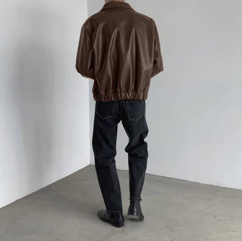 Brown Shirt Collar Korean Style Leather Jacket