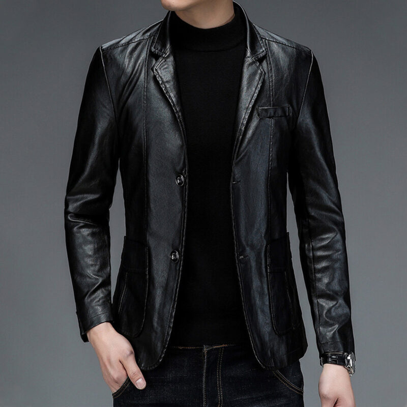 Classic Office Business Slim Fit Leather Blazer Jacket