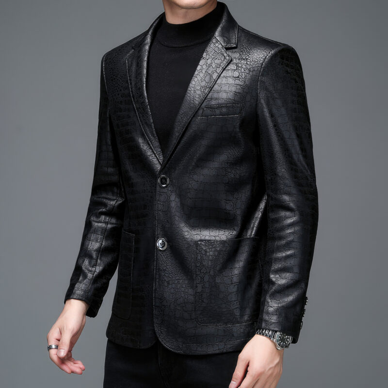 Genuine Cowhide Leather Crocodile Skin Pattern Leather Blazer