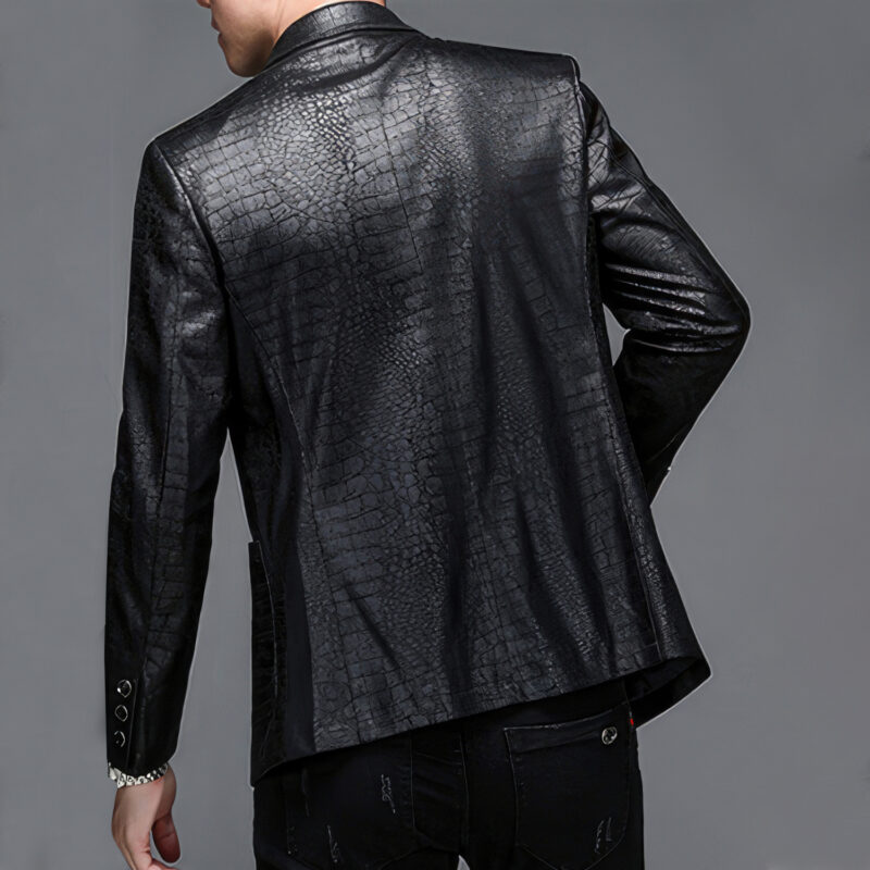 - Eye-Catching Crocodile Skin Pattern: The eye-catching Crocodile Skin Pattern Adds Sophistication And Luxury To This Classic Leather Blazer.