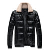 Padded Turn-Down Collar Casual Puffer Leather Jacket