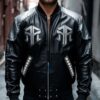 Be the first to review “Rapstern Black Leather Bomber Jacket with Metallic Silver Accents & Ray Design” Cancel reply