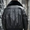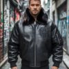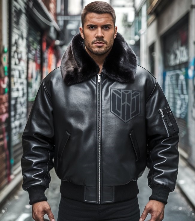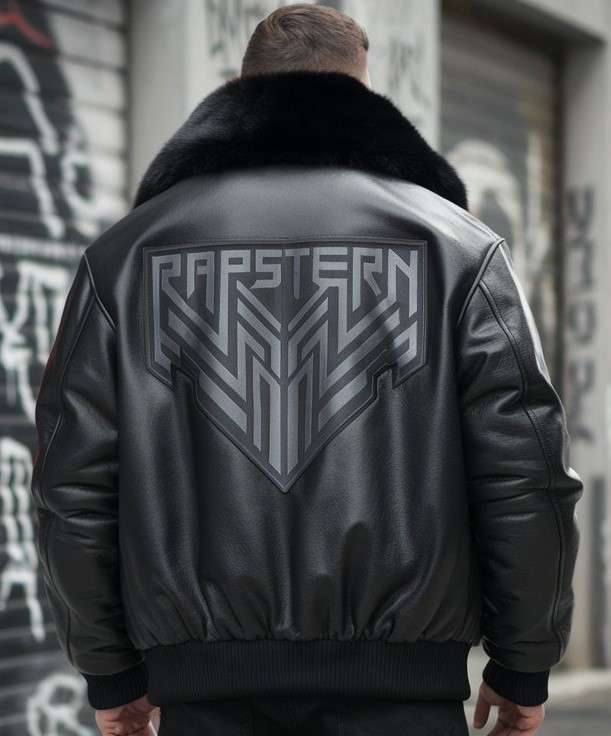 Description: Experience ultimate comfort and style with the Rapstern Urban Luxe Bomber Jacket with Fur. This modern leather jacket features a bold geometric logo on the left chest and the name “Rapstern” in an angular font. With its oversized fur collar, sturdy zipper, and ribbed cuffs, this jacket is a luxurious addition to your hip-hop style jacket collection. Perfect for chilly urban nights, it merges fashion with functionality.