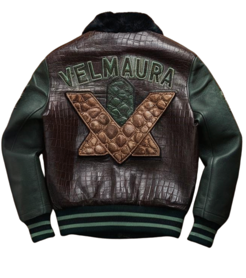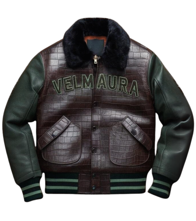 Discover the epitome of luxury and rugged style with the Velmaura Tactical Crocodile Leather Jacket. Crafted from rich, textured crocodile leather, this jacket exudes sophistication and power. The fur trim along the collar and cuffs adds a touch of elegance, while the intricate embroidery and tactical logos make a bold statement. Perfect for those who appreciate high-end fashion with a distinctive edge, this jacket is designed to impress from every angle.