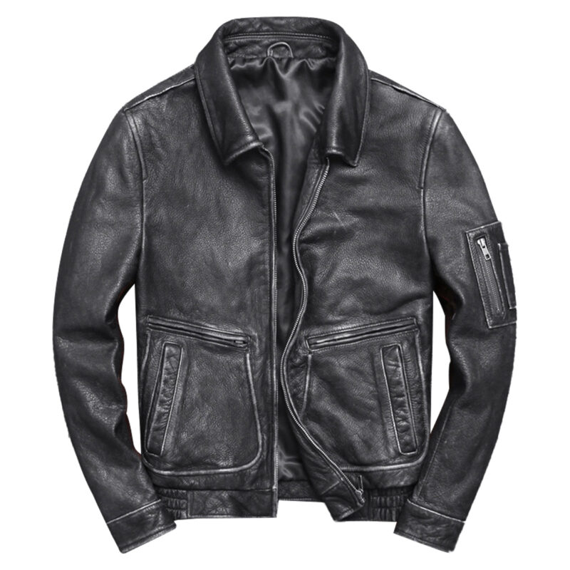 - High-Quality Genuine Cowhide: Experience luxury and durability with this men’s vintage black jacket, crafted from premium genuine cowhide leather for ultimate comfort.