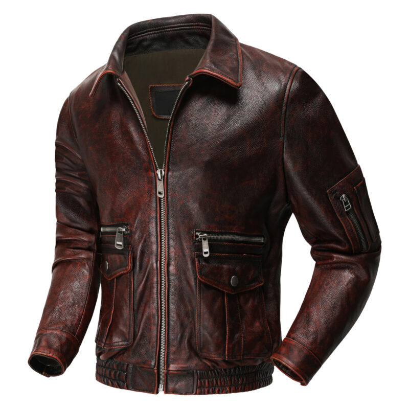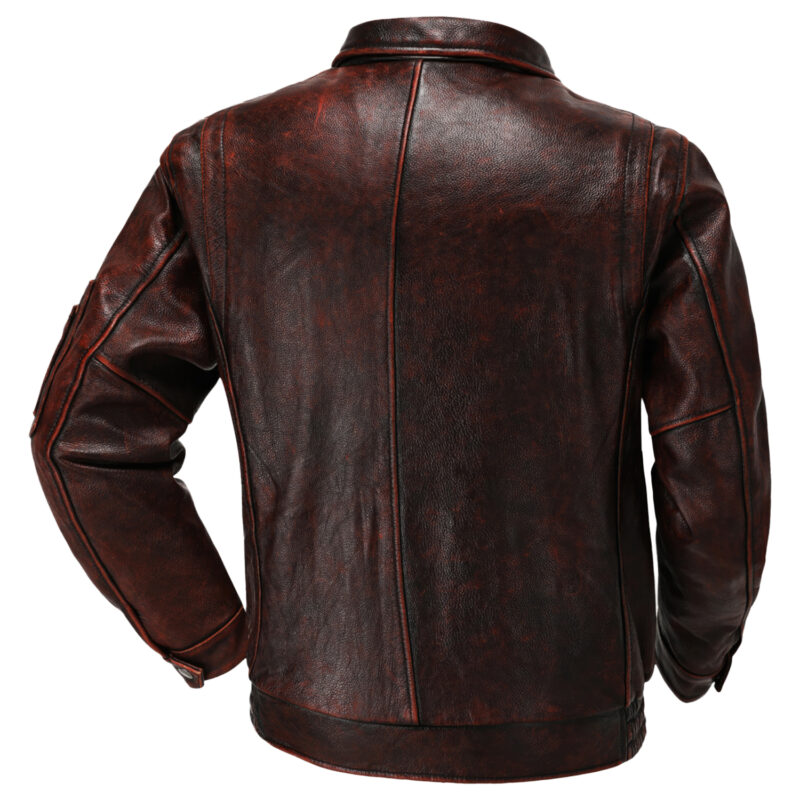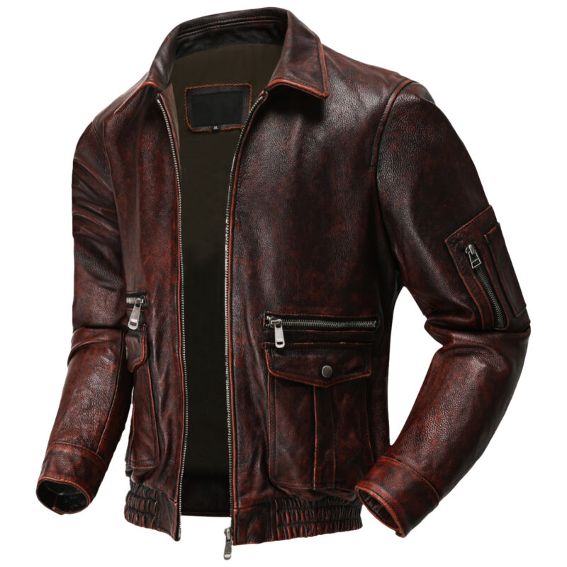 Embrace the vintage charm with our Men’s Distressed Red Genuine Cowhide Leather Jacket. Crafted from superior cowhide leather, this jacket exudes durability and a distinctly distressed aesthetic. The classic shirt collar design imparts a smart-casual edge, perfectly suited for any occasion. With practical multiple pockets and an elastic bottom hem, it guarantees convenience and comfort. Moreover, the secure YKK zipper closures add to its overall functionality, making it an absolute must-have addition to your wardrobe.