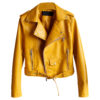 This women’s Mustard biker leather jacket is the ideal combination of edgy style and quality. It is made of real sheepskin leather, which provides greater durability while maintaining a soft and sumptuous feel. The jacket has a fashionable lapel collar and an asymmetric YKK zipper fastening, as well as an adjustable waist belt. The jacket’s utility is enhanced with many pockets that give adequate room for your needs. This jacket is both traditional and current, with its café racer aesthetics and slim-fit style, and is a must-have for any fashion-forward collection.